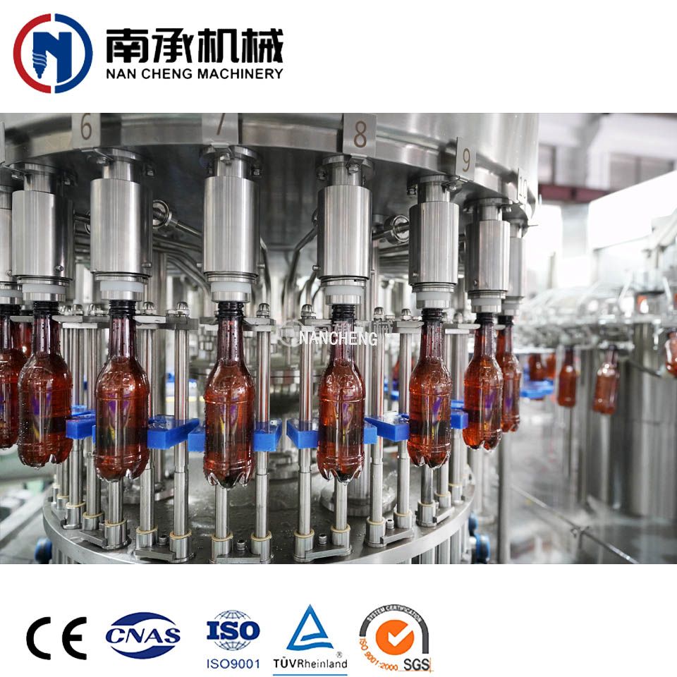 张家港鸭脖机械生产的果汁灌装生产设备集洗、灌、封为一体的热灌装机械,适用于各种果汁饮料灌装生产、蓝莓汁生产、猕猴桃汁灌装生产、梨汁灌装生产、葡萄汁灌装生产、苹果汁灌装生产、橙汁灌装生产;同时更换少量的零部件,便可用于纯净水灌装生线、矿泉水灌装生产线。果汁饮料设备采用先进的微负压重力式灌装原理,灌装快、稳、准,设有完善的物料回流系统,也可实现回流时独立回气,不与物料接触,减少物料二次污染及氧化。