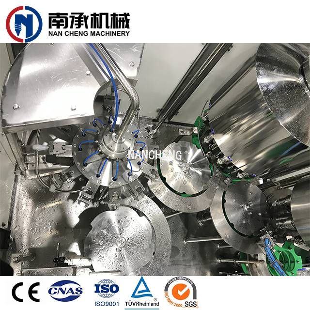 瓶子大小:200毫升~ 2 l 容量:4000瓶/小时 自动冲洗灌装旋盖机(三合一) 西门子电气设备 CE、SGS、TUV、MA&AA证书